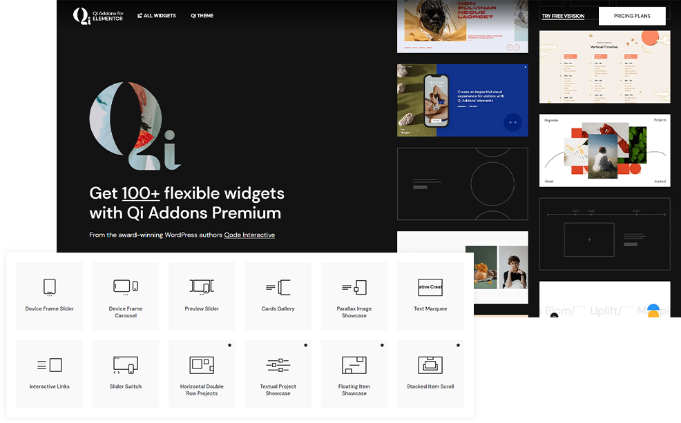 Get the Qi Addons for Elementor plugin, the largest free library of fully flexible custom widgets for Elementor on the market.