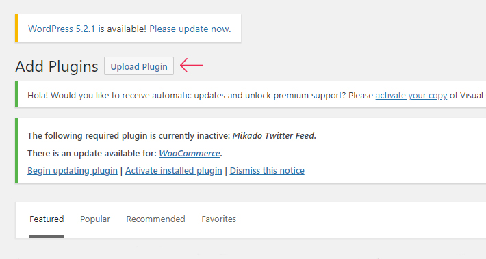 Navigate to Plugins. At the top of the page you’ll see a notification with all the recommended plugins you should install with the theme. One of these plugins is Slider Revolution.