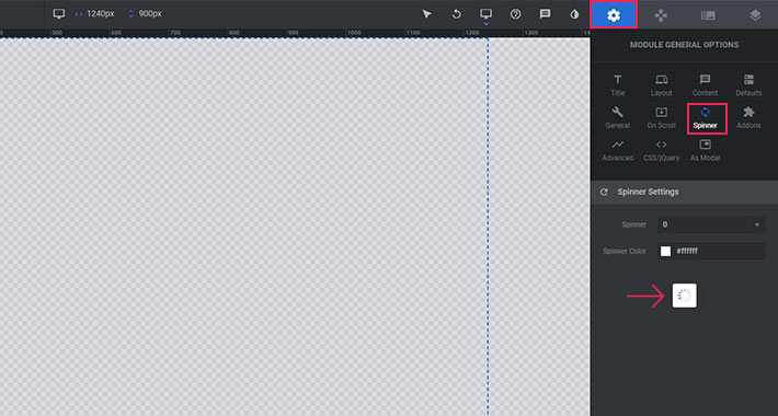 Under Module General Options > Defaults > Spinner, you can change the default spinner (or you can turn it off completely). The spinner will be displayed while your slider loads.