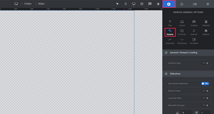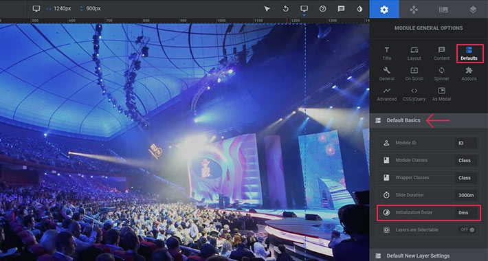 Besides the Slide Options tab, you will also find a number of other settings for customizing your background. In the Module General Options tab you have a variety of options regarding your slide behavior and visibility. Just be aware that if you insert a value in the “Initialization Delay” field, there is going to be a delay before the slide’s background image appears.