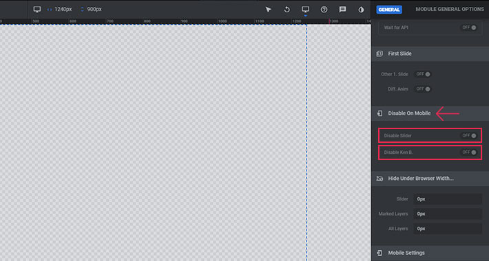Under Module General Options > General > Disable On Mobile, you can prevent your slider from displaying on mobile devices. You can also disable the KenBurn effect from displaying on mobile devices, (and thus greatly improve the performance of your page).