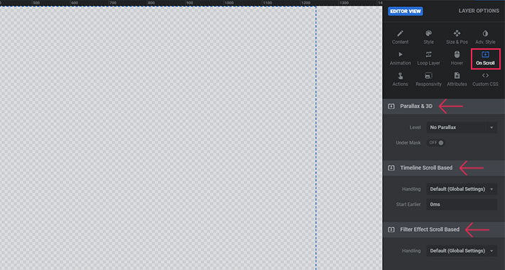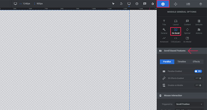 Under the Module General Options > On Scroll > Scroll Based Features, you can turn on parallax and/or 3D effects for your background images and individual layers. You can also set the mouse sensibility for Parallax, as well as its various levels of depths.