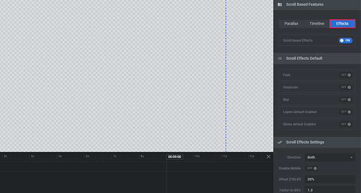 The Scroll Based Effects dropdown contains a number of interesting effects that you can apply to your slider when your user starts scrolling down the page. I suggest you play around with these and try them all out.