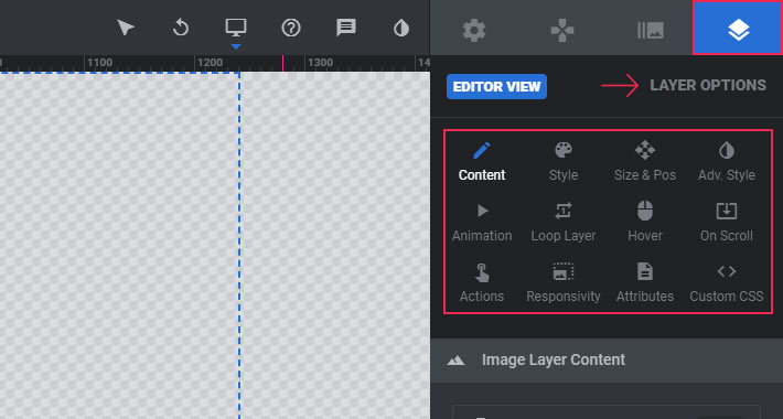 You can now head back to the Slider Options panel of your slider on the right. Here, you will see a number of neatly arranged icons containing some more useful options. There are too many settings here to cover them all, so we’ll only go through the most convenient ones.