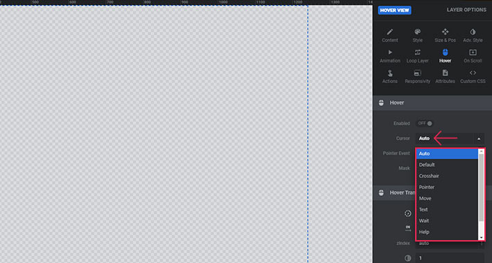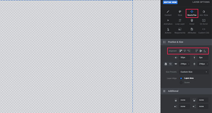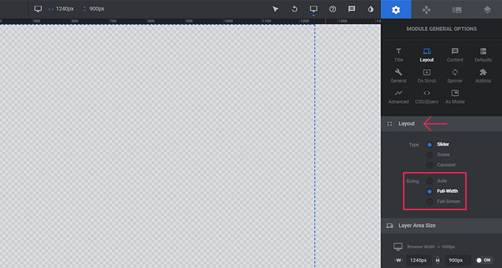 The second option under the Layout tab lets you choose a default size for each individual slider. First, you need to decide what you’re going to use your slider for. If you plan on creating a small slider, or if you want to animate some specific part of your page, you’ll probably want to choose the “Auto” option. On the other hand, if you want to create a large slider (usually displayed at the top of the page), you should choose either “Full Width” or “Full Screen”, depending on your specific needs.