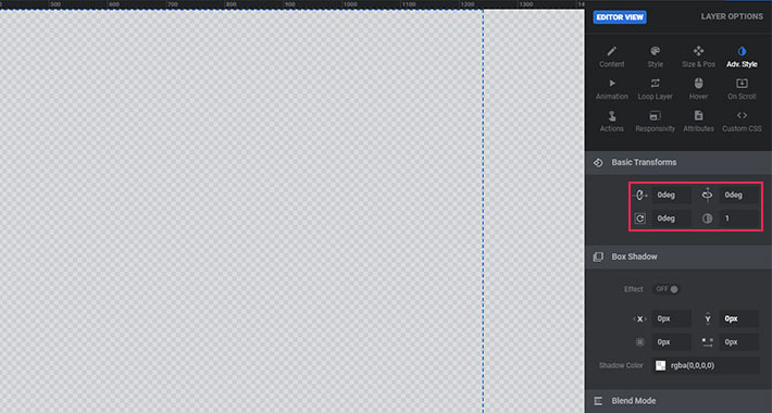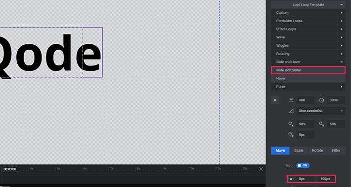 If you are wondering what the “Y” field is for when our animation has nothing to do with the y-axis, here is the explanation: If, for some reason, you want the animation to appear from the left and diagonally, you just need to insert a value in the Y axis field. If you insert a positive value, your layer will move diagonally up and to the right. On the other hand, if you decide to enter a negative value, the layer will move from down and to the right of the screen.