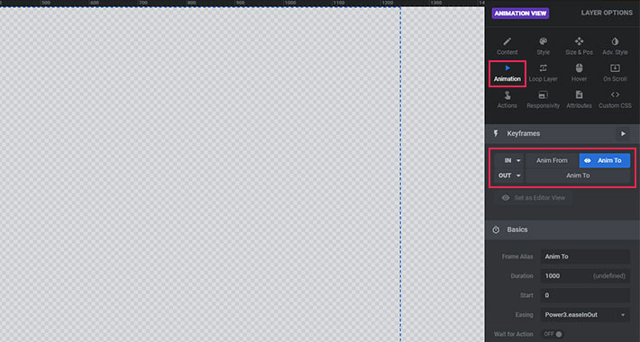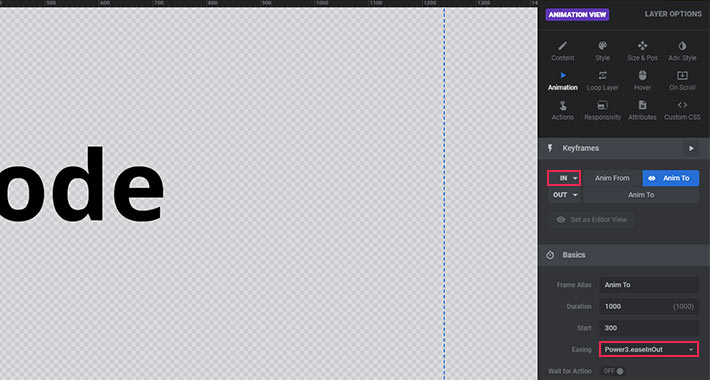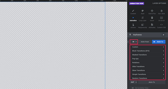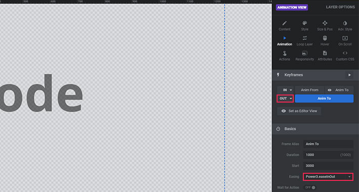 Now you can choose the type of outgoing animation you would like to use, as well as its easing. This is done in the Animation panel, and all the options are pretty much the same as for incoming animations.