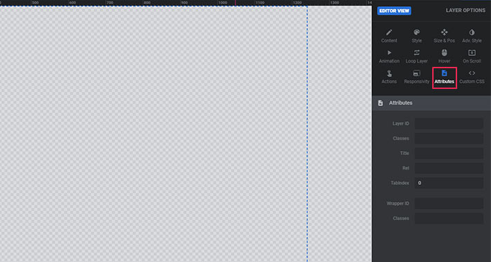 The Attributes tab lets you add custom IDs and classes to your layers. This then enables you to manipulate your layers via custom CSS. You can also use certain options in the Attributes tab (Rel, Title, Tabindex, and Alt) to enhance the accessibility of your slider and its layers.