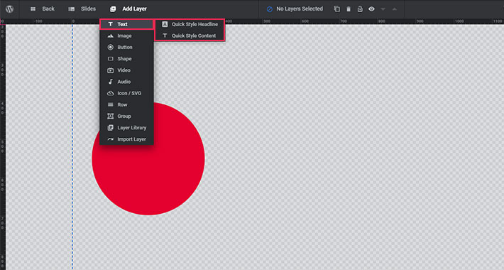 First, go to Add Layer, and click on Text. If you want to add a ‘title’ text choose Quick Style Headline, and if you want to add a paragraph choose Quick Style Content. I’ll choose a headline.
