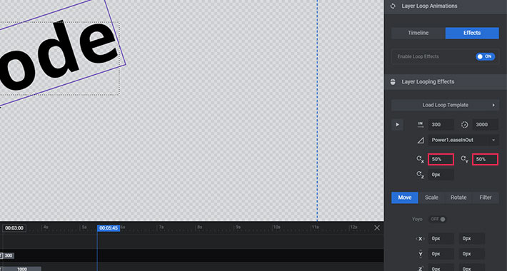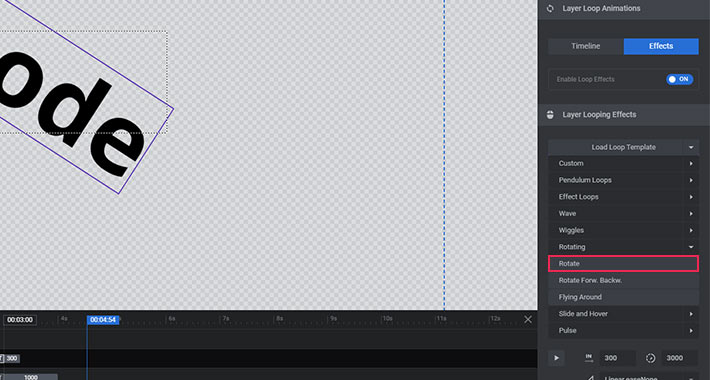 As its name suggests, the Rotating loop makes your layer rotate around the set axis point. However, your layer will not rotate by default. It will rotate and make a full circle if you choose the first item from the Rotating dropdown – the Rotate item.