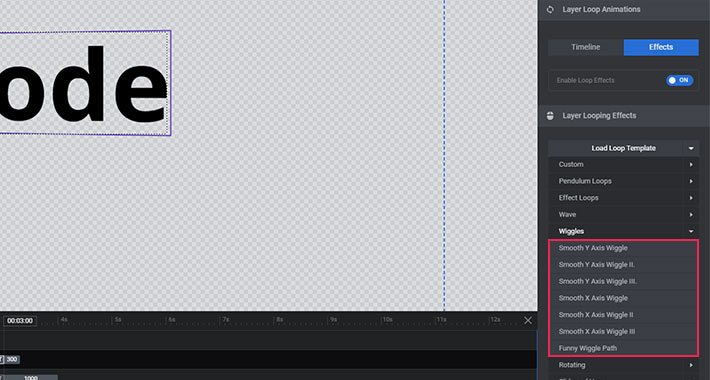 The Wiggle loop will make your layer wiggle from side to side – from up to down, from left to right, and vice versa. You can choose the way you’d like your layer to wiggle from the dropdown.