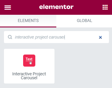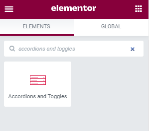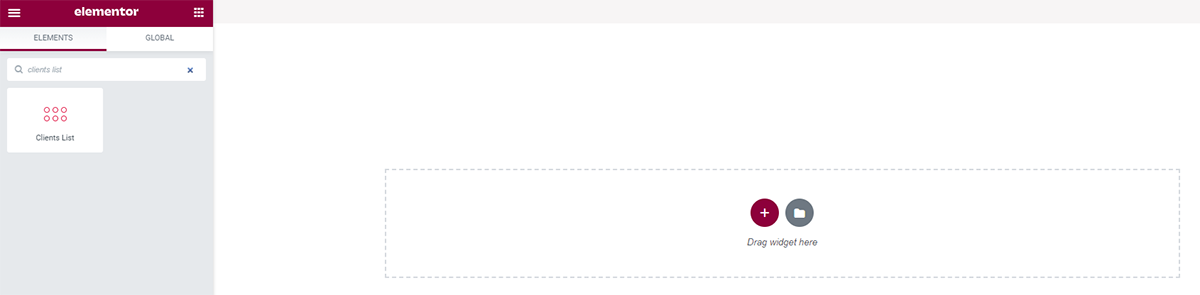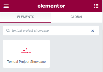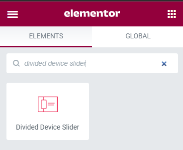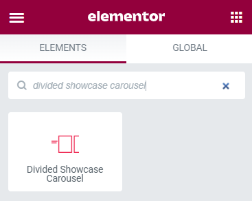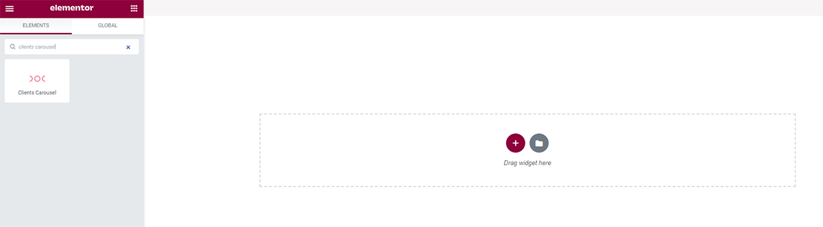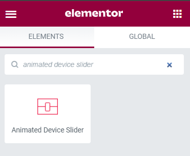 Simply locate the widget by typing its name in the ‘Search Widget…’ field positioned in the upper left under the ‘ELEMENTS’ tab. After this, you should just drag-and-drop the widget to a desired section on the right side of the screen.