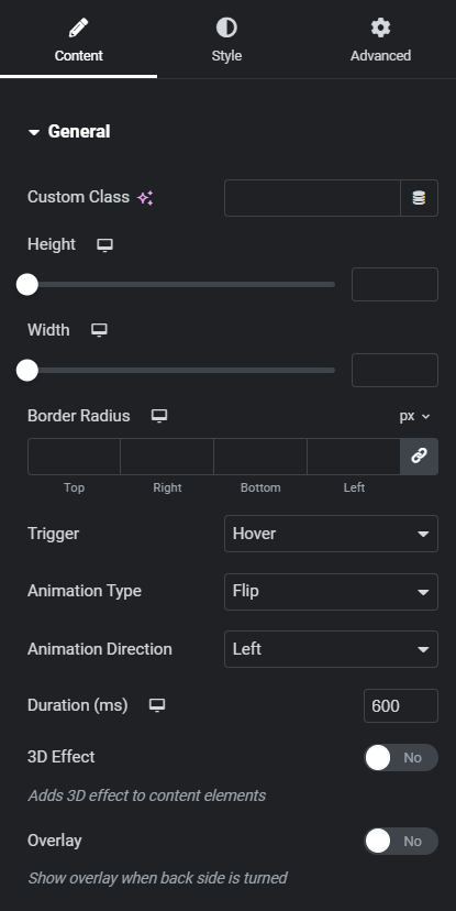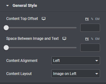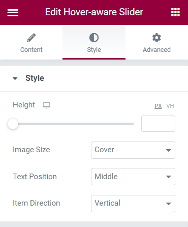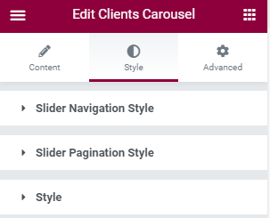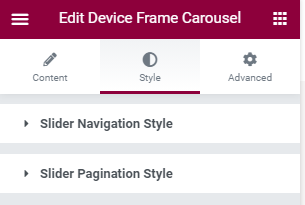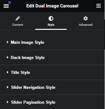 After you have finished with the basic set up of your dual image carousel, you can move on to styling the element. To access these settings, simply click on the tab titled Style, located next to the Content tab in the upper-left side of the screen.