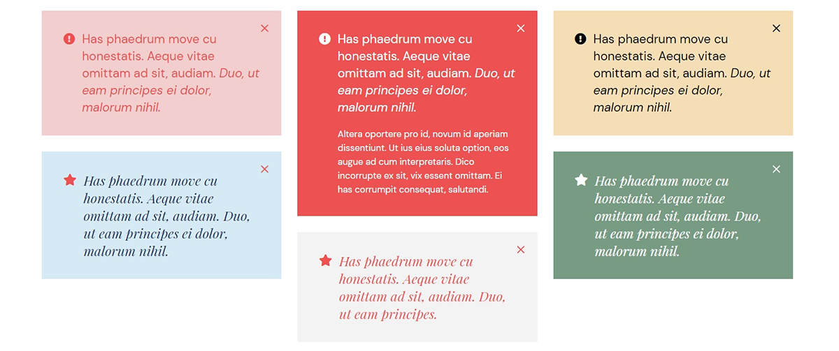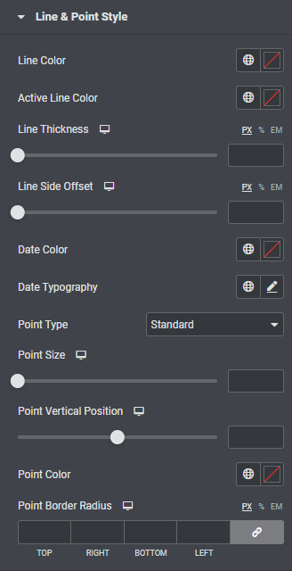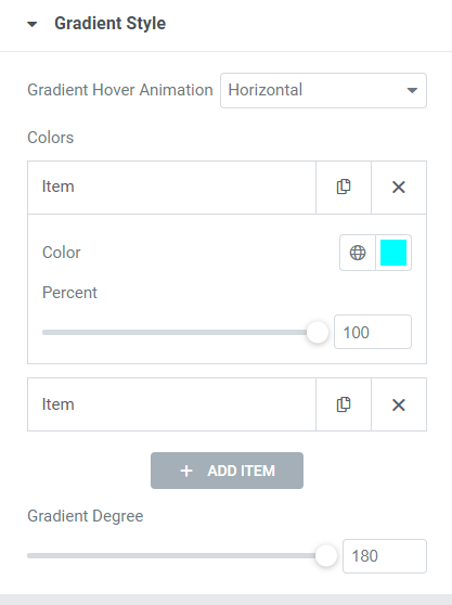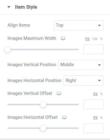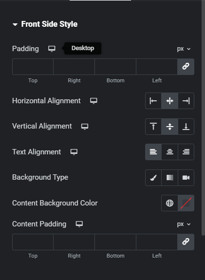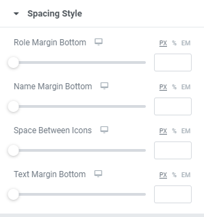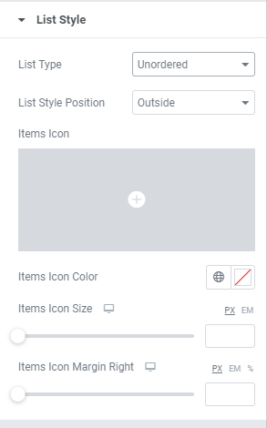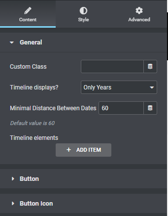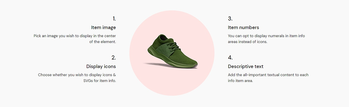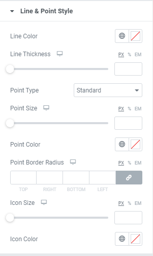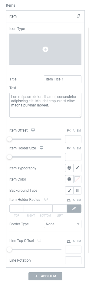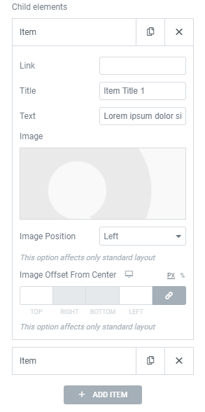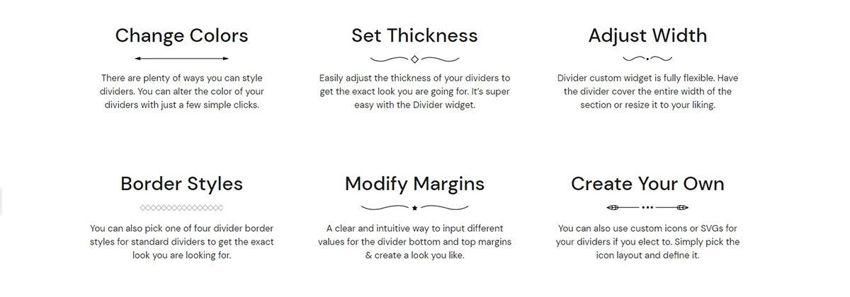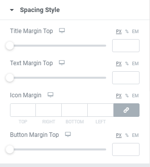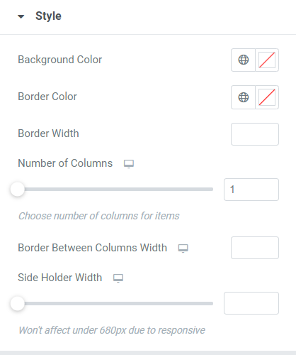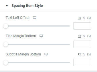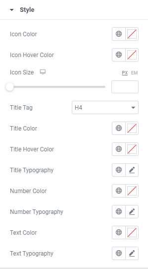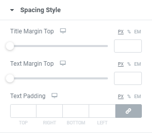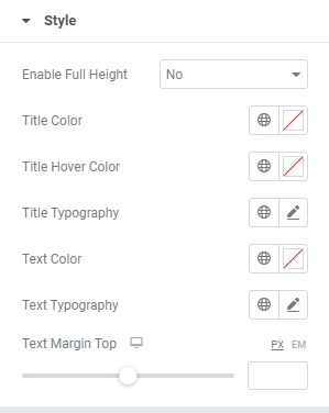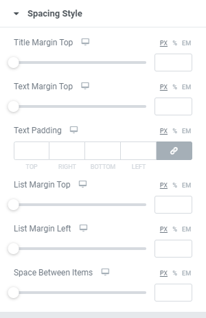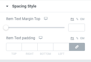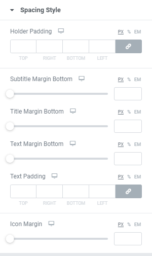 Here you have a multitude of completely intuitive options for applying different stylizations to the titles, content, borders, as well as the icons. Note that in the event that you selected the Standard element behavior type, you’ll also have the option to set the spacing between the items.