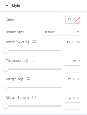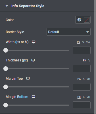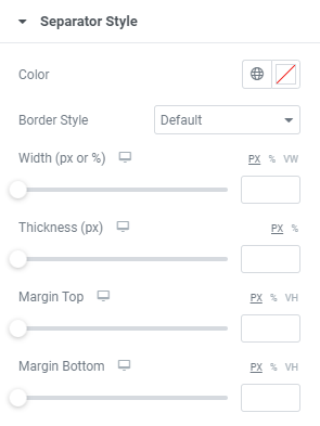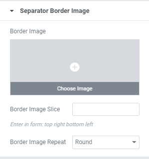 Here you can add a separator border image you wish to display, input the values for the image slice you wish to use as a border image (these values should be provided in the top-right-bottom-left fashion e.g. 20 10 15 20), and choose an image repeat style you wish to use. Please note that in order for these options to have effect, you first need to choose the border image separator layout from the Separator content sub-tab located above.