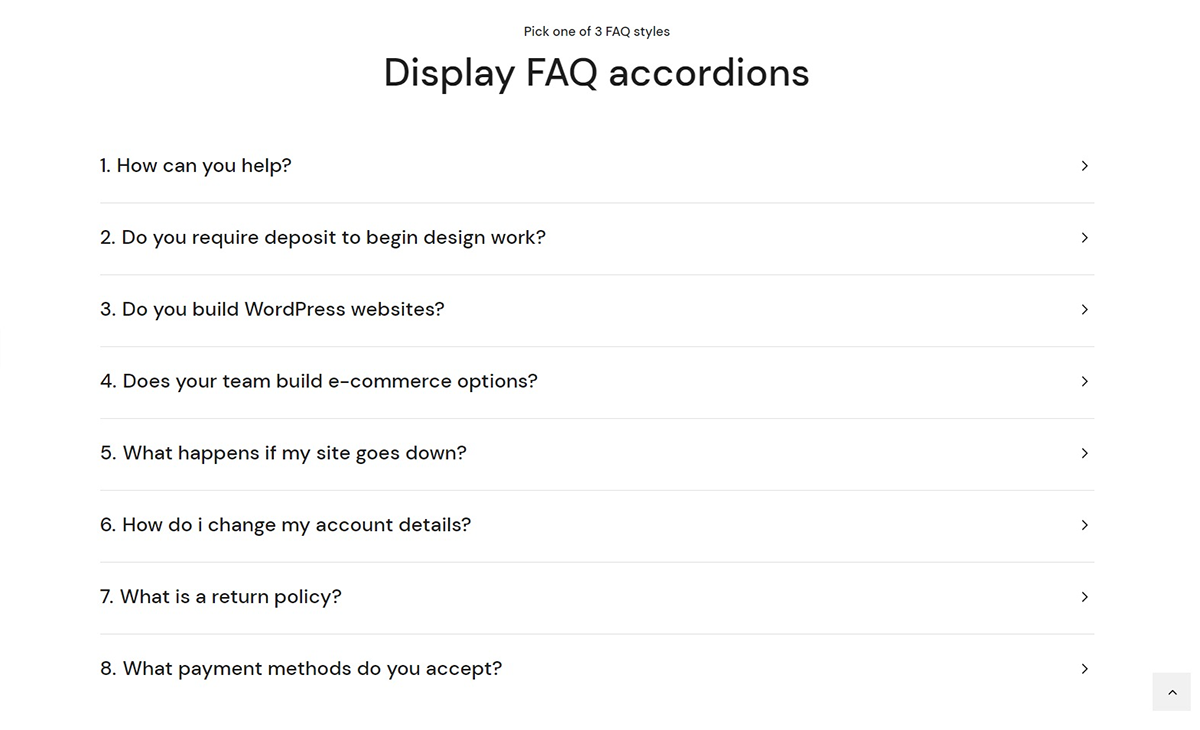 Next up, regardless whether you selected the Accordion or Toggle behavior, you can adapt the Style of the element. These include Standard, Boxed, Border Top and Border Between predefined styles. Depending on the look you wish to achieve, pick the corresponding element layout and you’ll be able to see the new settings applied on the fly on the right side of your screen.