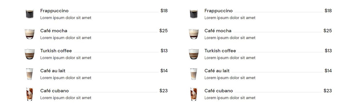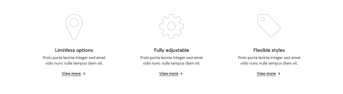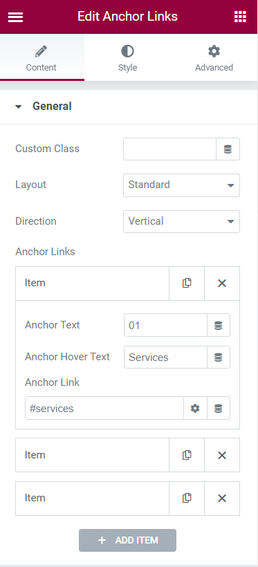 Depending on the layout you select, each of the items can either have an icon and a link, or textual content and a link.
