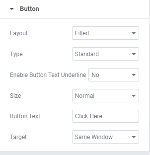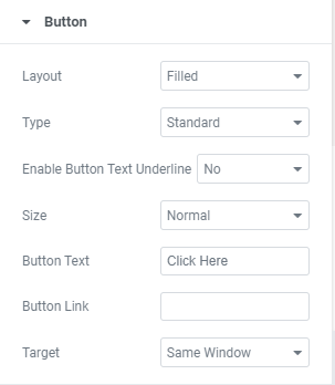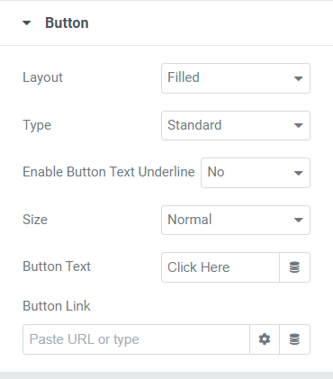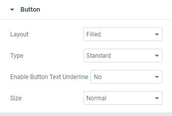 For both filled and outlined buttons you can alter the button size and select one of three types: standard, with inner border, and icon boxed. You can also enable a button text underline, set a size for the button, and choose how the link opens.