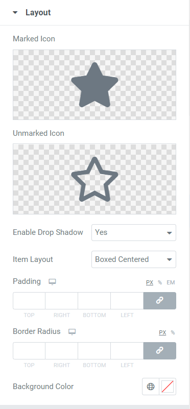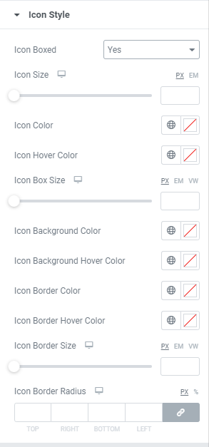 In the event that you enabled boxes around icons, you can also configure box size, border size and input values for icon border radius.
