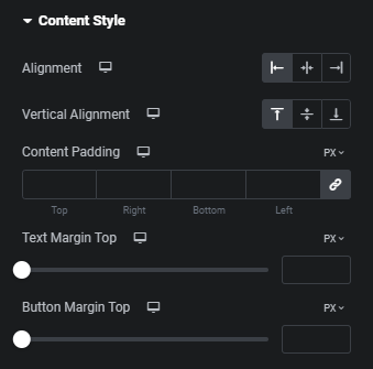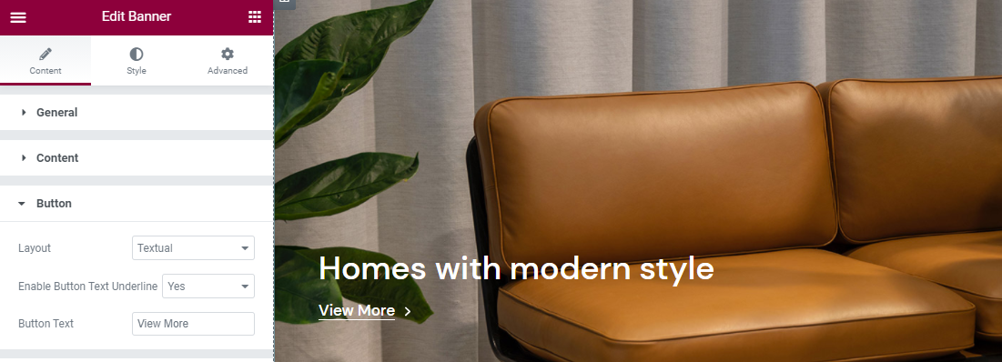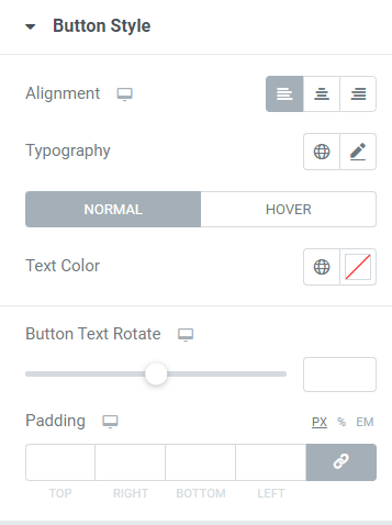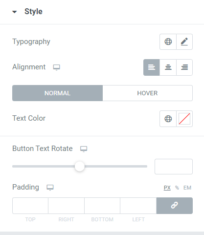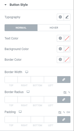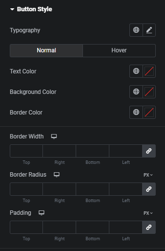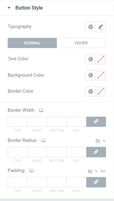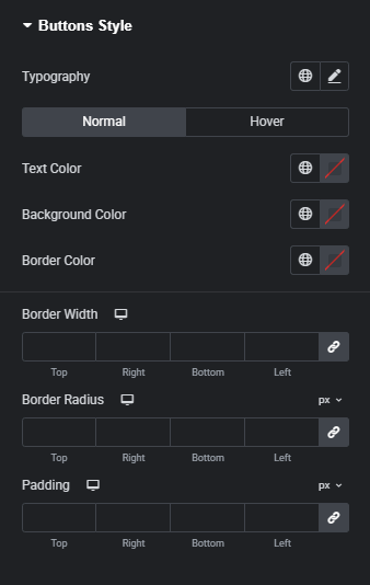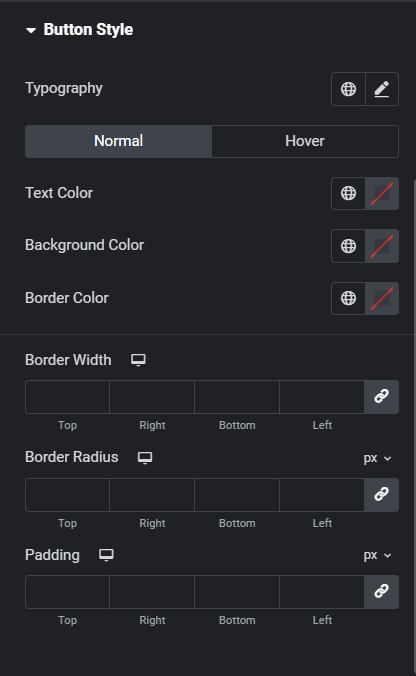 In the event that you selected the Textual button layout from the Content tab General, you can adjust the typography, color, and hover color for the link text here.