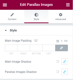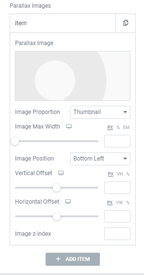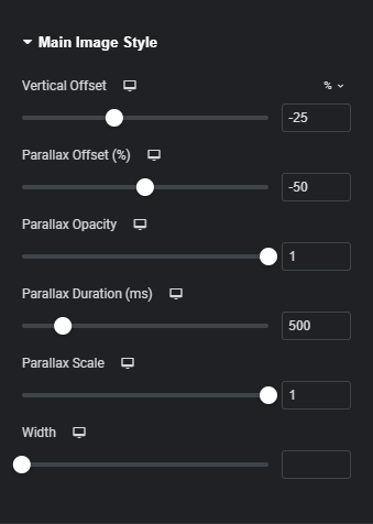 You can configure the vertical offset, parallax offset, parallax opacity, parallax duration, parallax scale, and finally, the width for the main image.