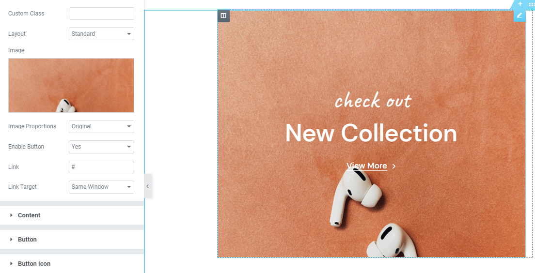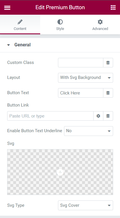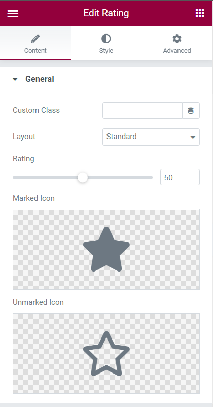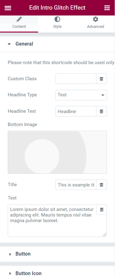 If you selected the Icon button layout from the Content tab General, you can adjust the icon here.