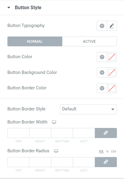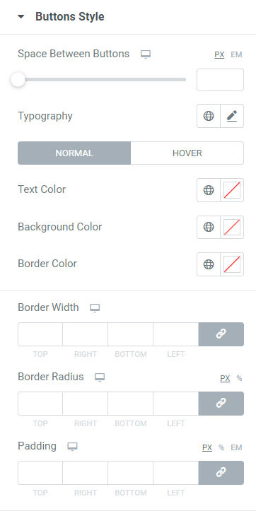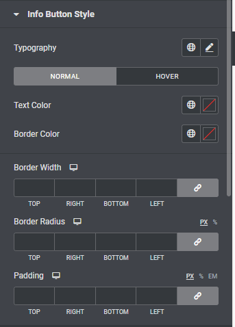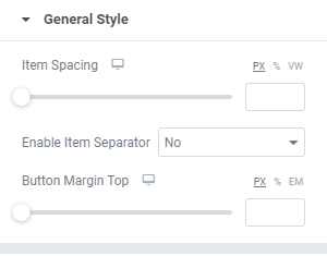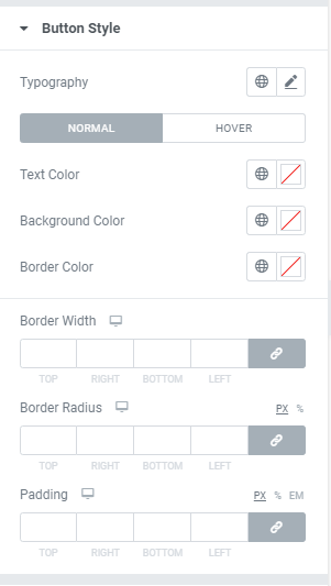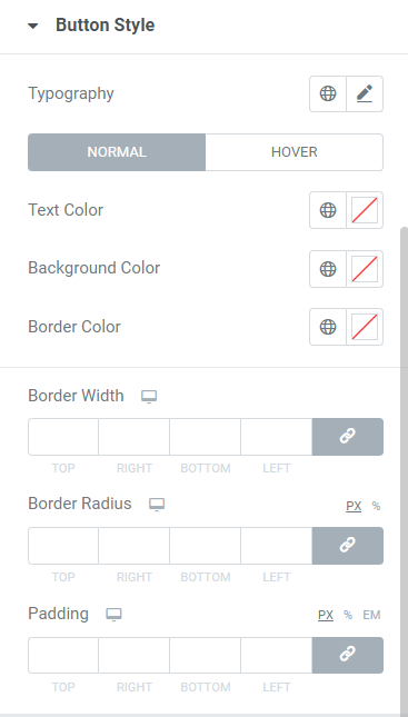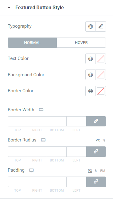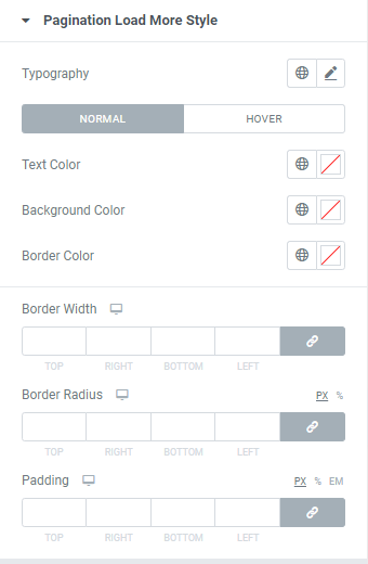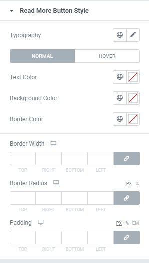 In the event that you decided to display the read more button for items in the list (this option is located in the Layout content sub-tab) Here you can adjust the button text typography and color, button background and border colors, border width, radius, as well as the button padding. Note that you can alter the colors & background for the button in both its normal and hover states.