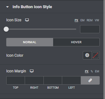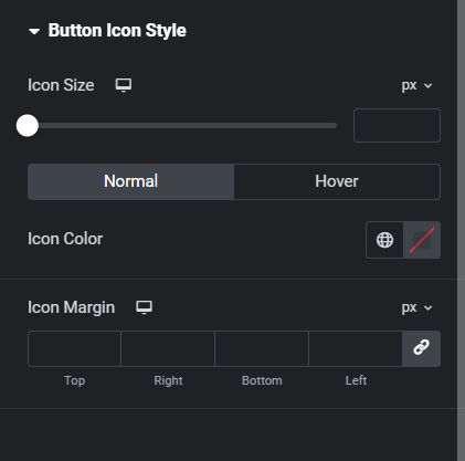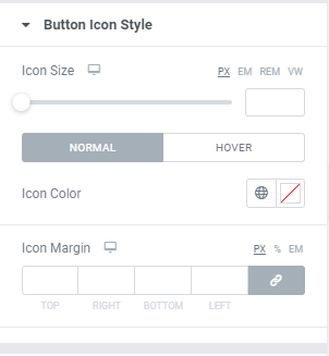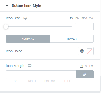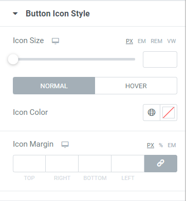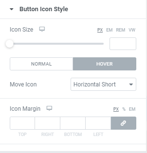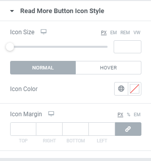 Next up is the read more button icon style sub-tab where you can adjust the icon size, set icon margins, and make different stylistic choices for your button icon in its normal (idle) and hover states; you can select the icon color in its normal state, and choose one of four behavior types for the button when it is hovered on.