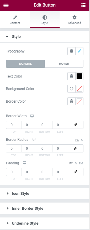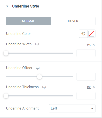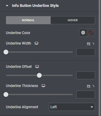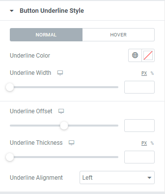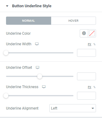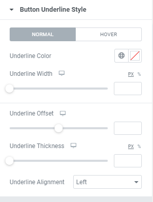 Button Underline Style sub-tab lets you apply different styles to button underline for both its normal (idle) and hover states.
