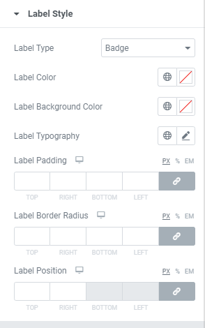 In this sub-tab you can adjust the label text color, typography, and spacing.