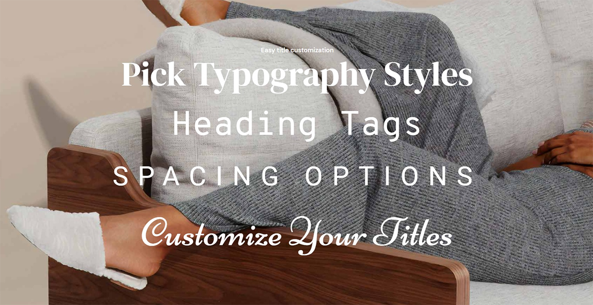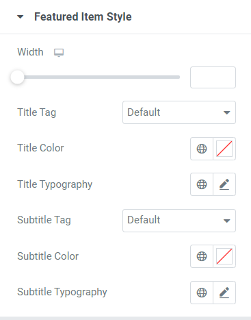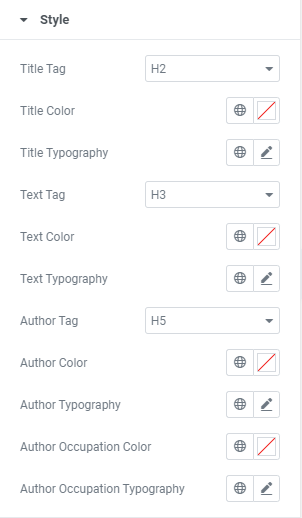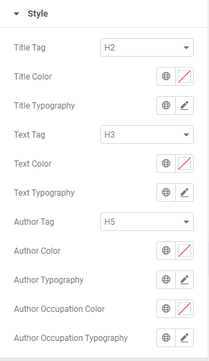 In the first tab you get to configure the heading tag, color and typography style for titles.