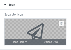 In the separator icon sub-tab you can add an icon or an SVG you wish to place on your separator line. This option becomes available once you select the with icon separator layout from the Separator content sub-tab located above.