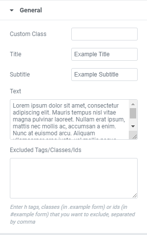 This sub-tab provides you with a set of options relating to the title inside the element.