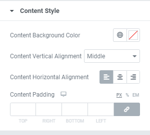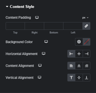 This is where you can input values for content padding, set a background color for the slider content area, set a horizontal, vertical and content alignment for the content portion of your slider.