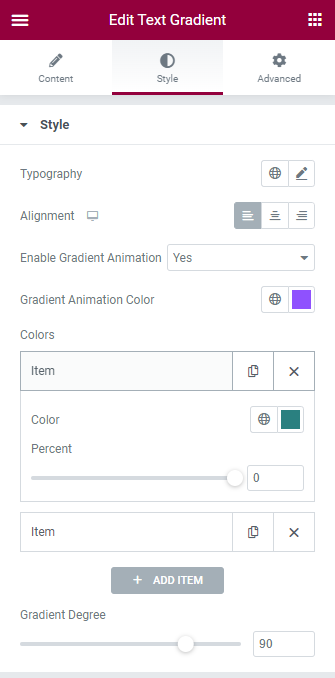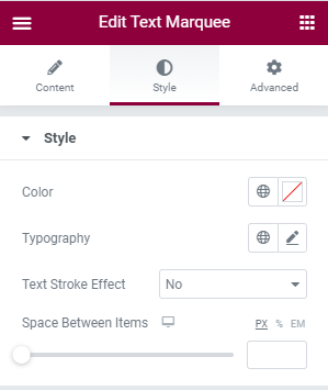 After you have finished with the basic set up of your animated text, you can move on to styling the element. To access these settings, simply click on the tab titled Style, located next to the Content tab in the upper-left side of the screen.
