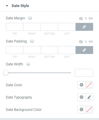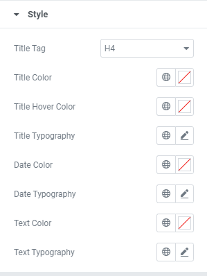 Here you’ll find 7 sub-tabs; style, read more button style, read more button icon style, read more button inner border style, read more button underline style, content style, and date style. First off, let’s go through the settings that you can adjust in the Style sub-tab.