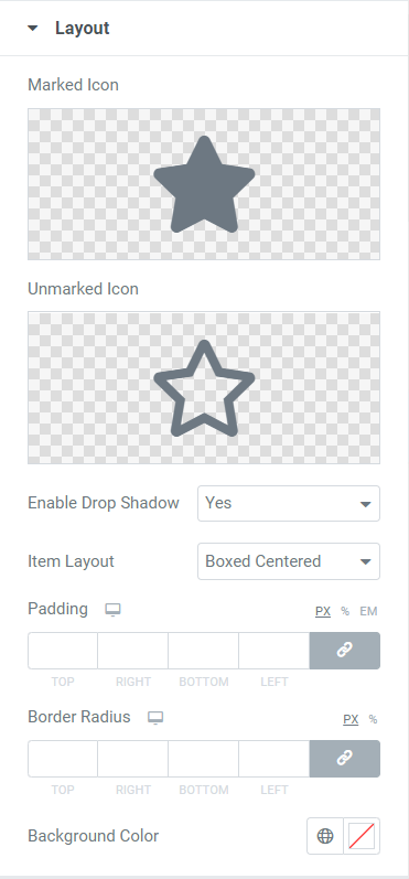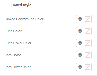 Here you can choose whether you wish to place a box around the icons, configure the icon size, and icon color. In the event that you elect to make the element boxed, you can also set a background color, border color, adjust the box size, border type, border width, and input values for the border radius.