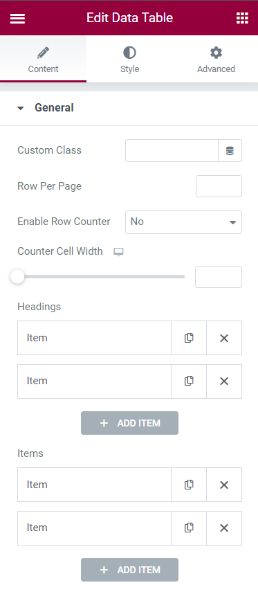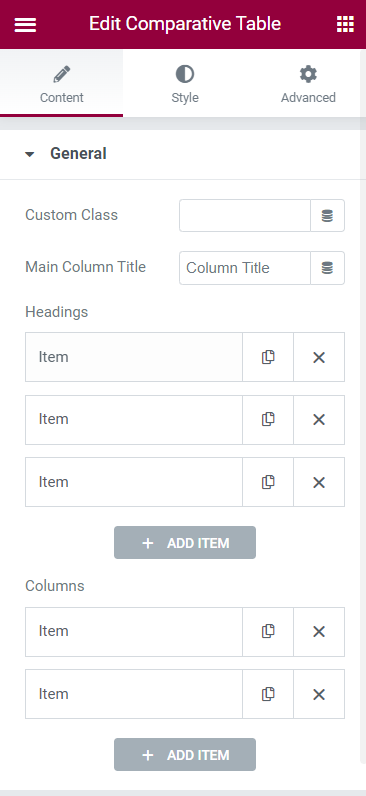 Under the section titled Items you can add each individual item/section you wish to feature in your Accordion or Toggle. Here you can input a title and add & customize the content for each of the items you wish to display.