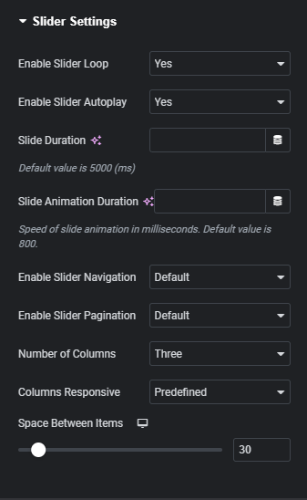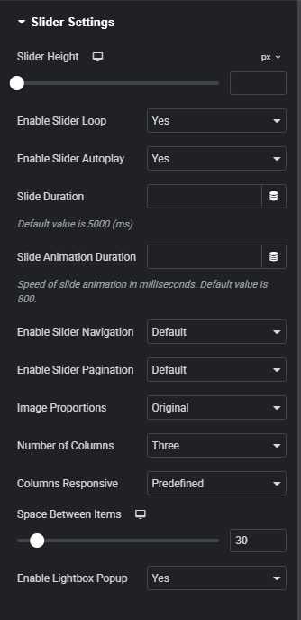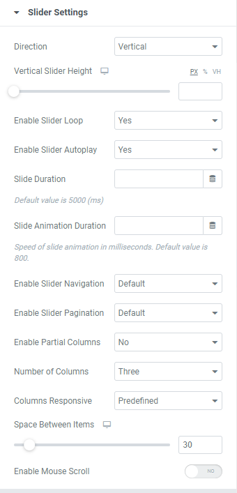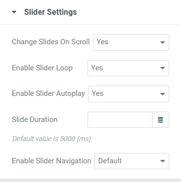 This sub-tab allows you to make adjustments to the slider and its behavior.