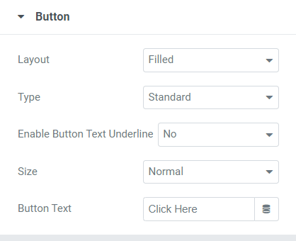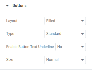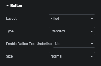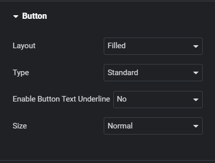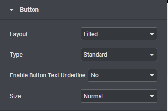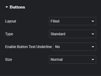 Here you can choose a button layout for the slider buttons. You can enable an underline for the button text, and for filled and outlined button layouts you can choose a button type and set a button size.