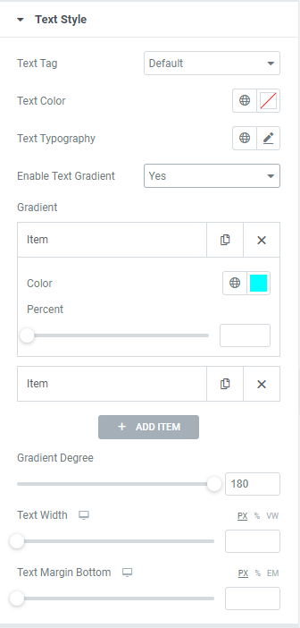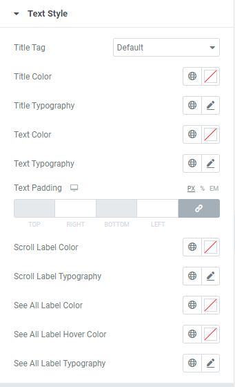 You can make adjustments to the news item textual content here. These options include adjusting the heading tag, color, typography, as well as padding and margins for the textual content featured in your news ticker items.