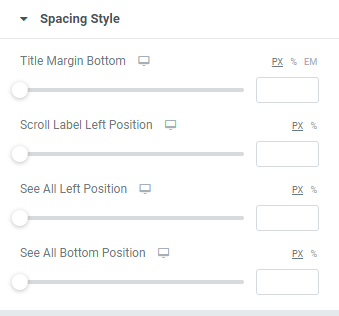 Here you’ll find 9 sub-tabs; slider navigation style, slider pagination style, style, read more button style, read more button icon style, read more button inner border style, read more button underline style, content style, and date style. First off, let’s go through the settings that you can adjust in the Slider Navigation Style sub-tab.