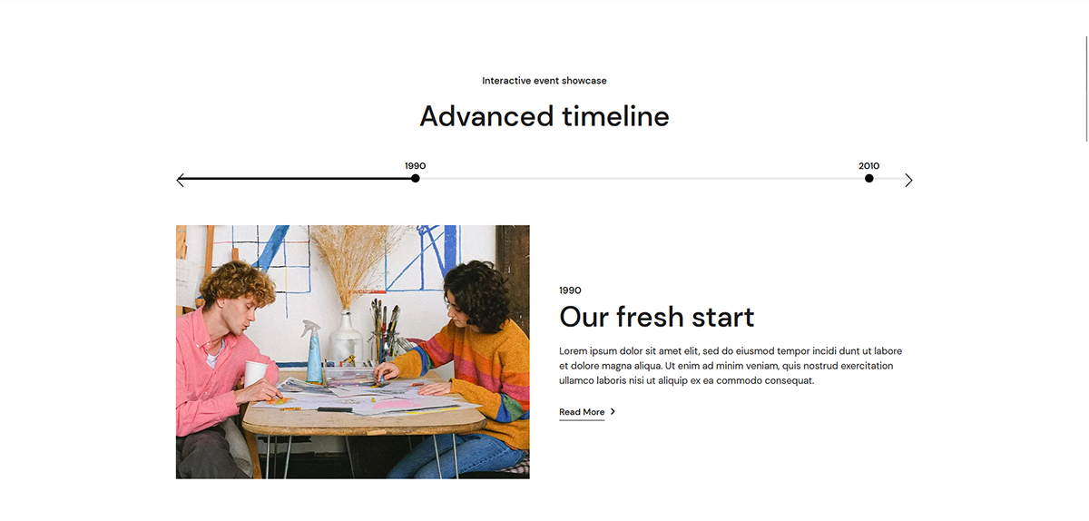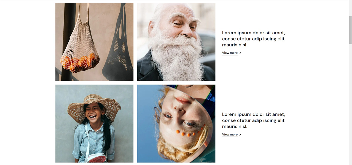 Dual Image Carousel custom widget for Elementor lets you craft visually striking two-image animated carousel showcase sections. The element contains optional parallax animations, with the two images scrolling at independent speeds as their respective slide comes into view.