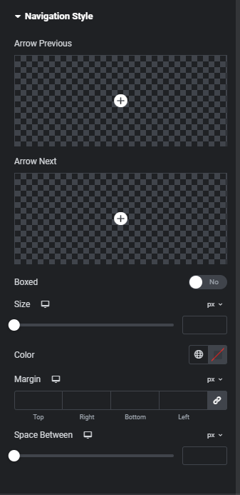 You can also add an icon or an SVG for both previous and next navigation arrows, set the arrow main & background color, arrow hover color and behavior, arrow size, and navigation arrow holder width and height.