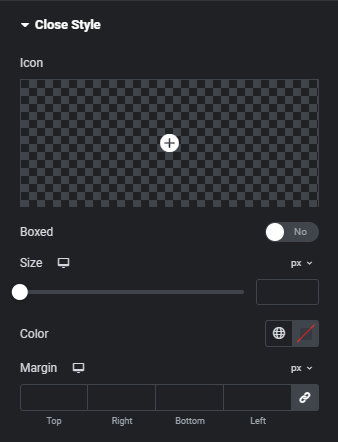 Finally, here you can set a color for the close button, and input values for the close button margins.