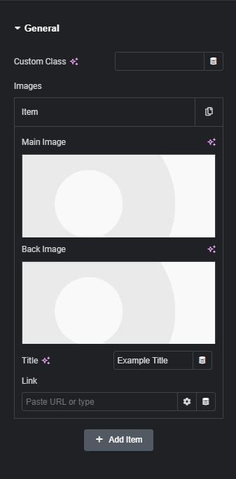 For each of the items you have the option to provide a main image, a back image, input a title, and add a URL you wish to link the slide to.
