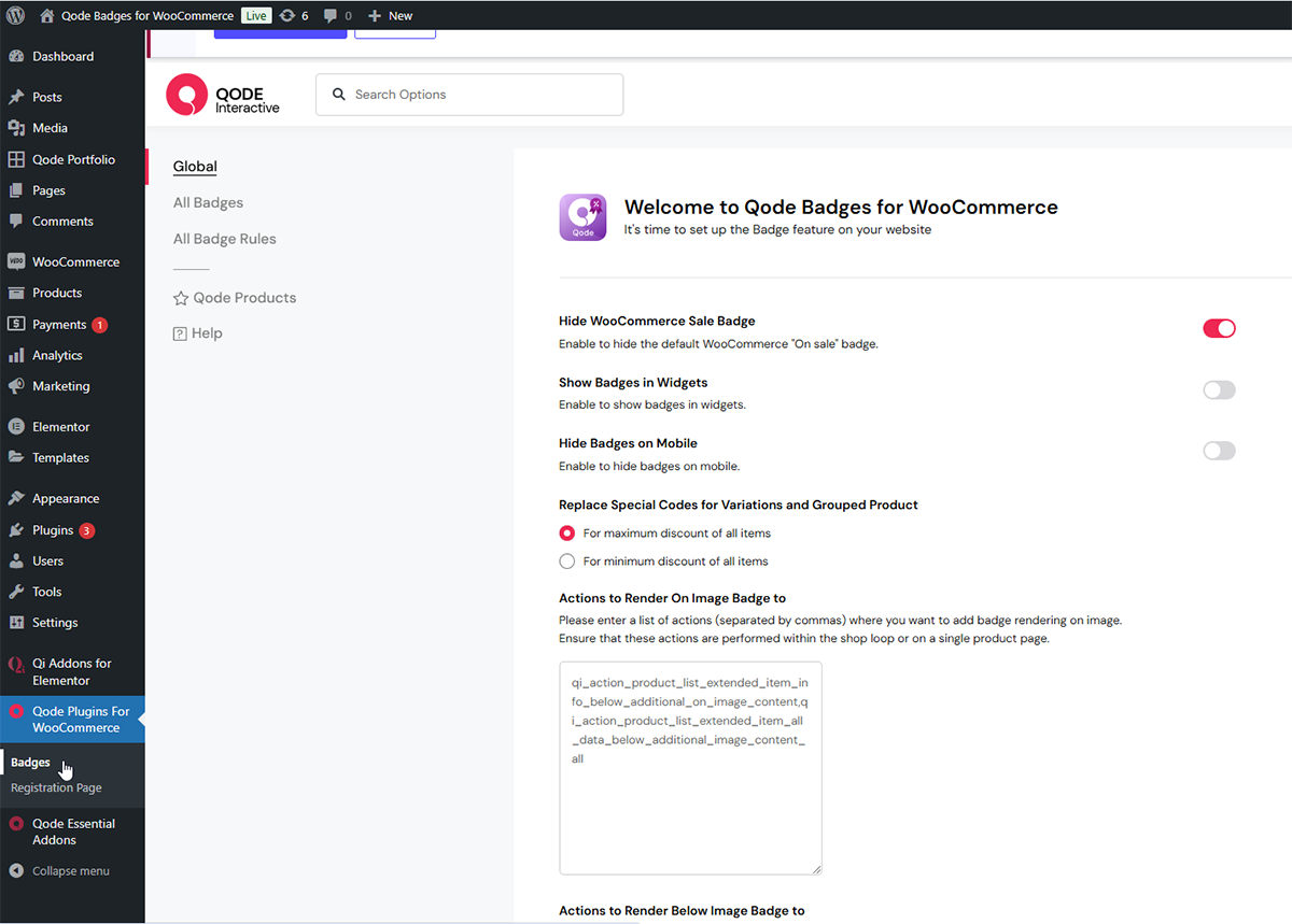 To access these settings, simply navigate to Qode Plugins for WooCommerce > Badges > Global.