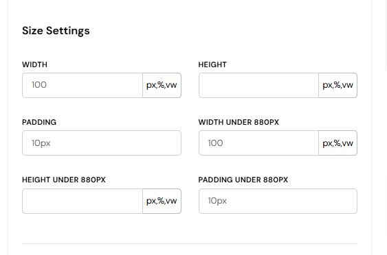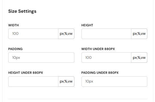 This is where you can configure the badge width, height, as well as padding. You can perform the same for badge size on devices with screens smaller than 880px.