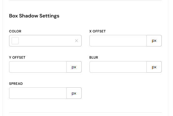 Here you can make adjustments to the badge box shadow. You have the option to set the box shadow color, X offset, Y offset, blur, as well as spread.