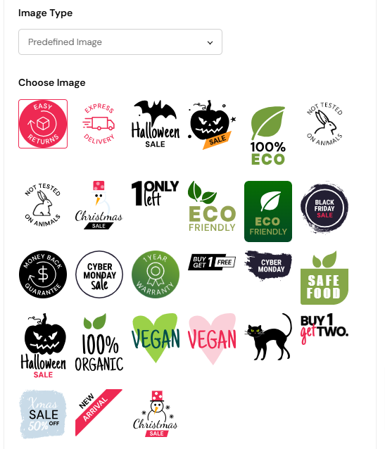 If you select the On Image badge display type, you can fine-tune the vertical and horizontal position for the badge. You can choose between three placements each for both horizontal and vertical positions. In addition to this, you can input values for both vertical and horizontal badge offsets.